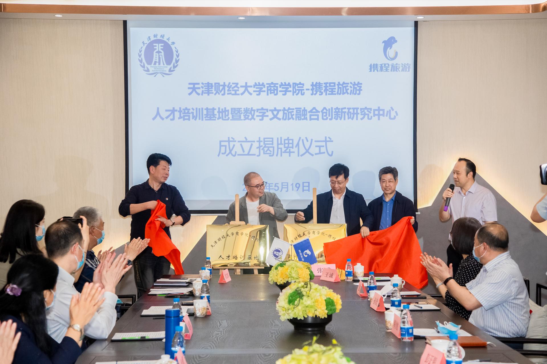 院长彭正银、天津携程国际旅行社有限公司总经理王诚以及唐熙影视科技(天津)有限公司副总经理、数字文旅融合创新研究中心执行主任夏群共同为培训基地和研究中心揭牌。