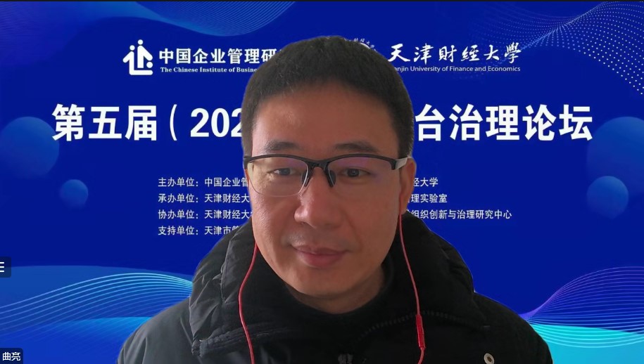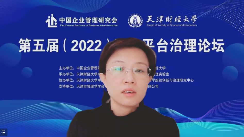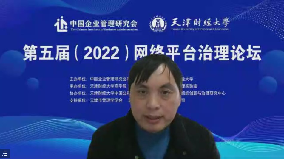 第一单元以“平台经济与平台治理”为议题,东北财经大学汪旭晖教授从平台生态垄断和平台企业规制错配视角对平台经济领域的反垄断困境进行了分析,并给出改进对策;天津海量重度大数据企业孵化器有限公司刘激扬总经理基于场景创新视角,从行业机遇、生态平台、发展愿景、主营业务等方面,对蓝色光标——海量数字服务产教融合平台的运营模式进行了分享。第二单元以“数据赋能与平台竞争”为议题,山东大学杨慧馨教授从供给需求两侧、企业内部外部视角对数据赋能中小企业数字化转型的路径与机制进行了深度解析;物产中大期货有限公司彭磊总经理以本公司的员工持股发展路径为例,对大型国有平台企业员工持股计划架构进行了解析;清华大学王勇教授立足平台经济反垄断实践,对不同类型平台企业之间争夺注意力资源的竞争机制进行了学术探讨。第三单元以“平台治理准则与实践”为议题,浙江工商大学曲亮教授从组织和技术两个维度,对平台企业治理准则进行了比较研究,界定了平台治理准则的相关主体,提出了“一体两翼四轮驱动”的治理架构;中国科学院大学乔晗教授的报告以贵阳大数据交易所为例,对数据要素市场化路径进行了组态分析,并对数据要素市场化配置效率进行了评价;电子科技大学蒋国银教授就乡村文化旅游云服务平台的运营模式进行了分享交流,并提出收益、激励、声誉三个方面的运营机制。