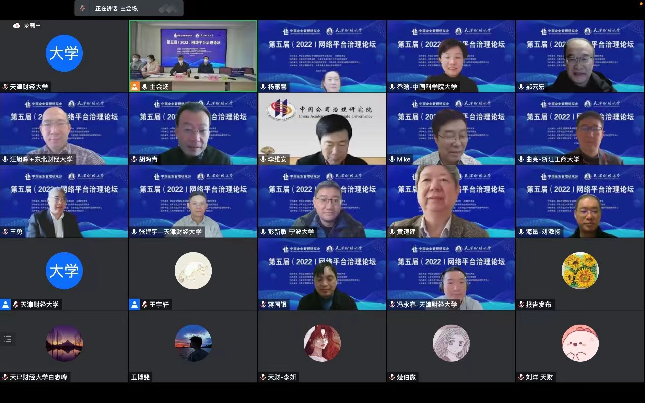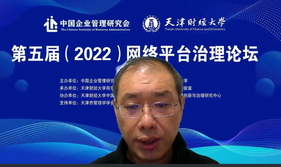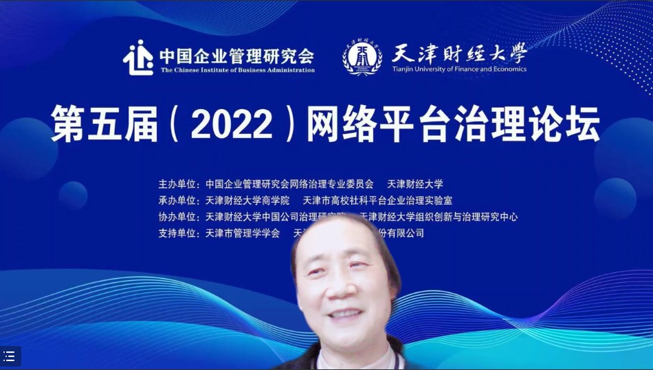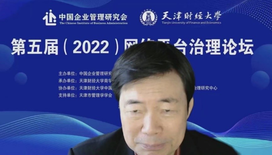 中国企业管理研究会网络治理专业委员会主任、中国公司治理研究院院长李维安教授致辞,指出网络平台治理论坛自2018年以来已连续在天津成功举办了四届,是继“网络治理与商业模式创新研讨会”“网络治理青年论坛”后,第三个由网络治理专业委员会发起并主办的学术交流与研讨的平台。李维安教授指出平台经济面临诸如资本无序扩张、创新引领乏力、制度供给不足等治理困境,平台治理成为重大的社会现实问题和理论研究命题。《中国数字平台治理研究报告(2022)》将在第五届论坛上正式发布,从中国数字平台的治理实践出发,针对打破平台企业治理困境,推动平台经济规范健康有序发展进行深入思考和研讨。
