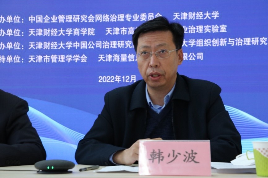 韩少波副校长致辞,指出我校面向国家重大战略需求,服务天津区域经济发展,服务学校学科建设与人才培养,积极开展科研管理工作创新,强化科研创新团队建设,共同推进科研创新。网络组织与平台治理研究团队,积极响应党的二十大报告提出的“加快建设网络强国、数字中国”的战略目标,连续五年针对我国数字平台的治理现状及治理成效进行了深度研究,持续发力,在各界支持下取得了具有一定影响力的学术成果,为我国数字平台的有效治理和持续性发展建言献策。
