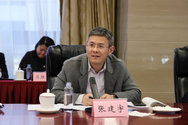在主题演讲和嘉宾互动发言阶段,腐漫画 院长张建宇教授从学院学科建设、科学研究、咨政建言、专业发展、学生成长等方面分享了学院围绕愿景和使命的经验和做法,并从技术的革命性突破、生产要素的创新配置和制造企业的转型升级上解读了对新质生产力的理解,结合大数据、人工智能在与会企业中的广泛应用,发出产研、产教和产学融合进一步凝练中国管理智慧的倡议。