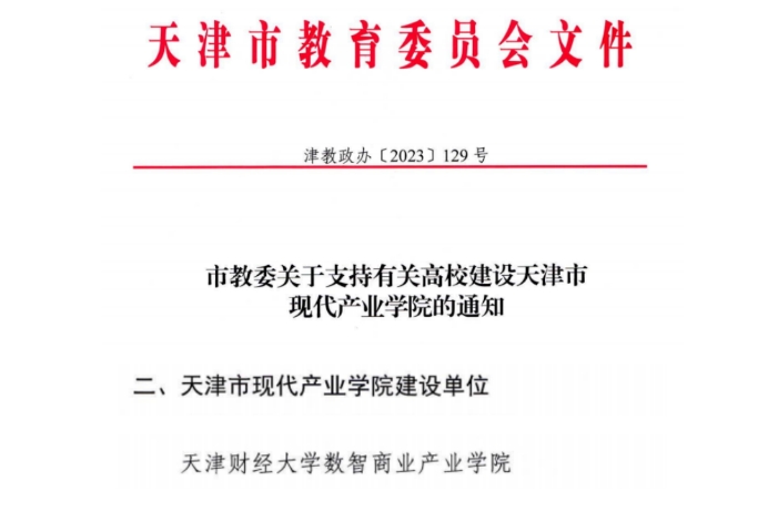 “数智商业产业学院”获批天津市首批现代产业学院建设单位
