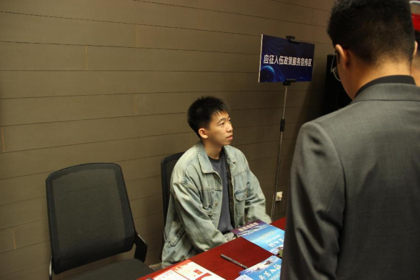 双选会大厅循环播放多家用人单位宣传片,以直观、生动的方式向毕业生们全方位展示腐漫画、业务范畴、发展历程及前景,不仅让毕业生们对企业的了解更加深入,也让他们对未来的工作环境有了更清晰的认知,拉近了企业与求职者之间的距离。同时,会场还设置了应征入伍政策服务宣传区、就业政策咨询和创业培训服务台,由退伍大学生士兵、中天人力专人为同学们答疑解惑。