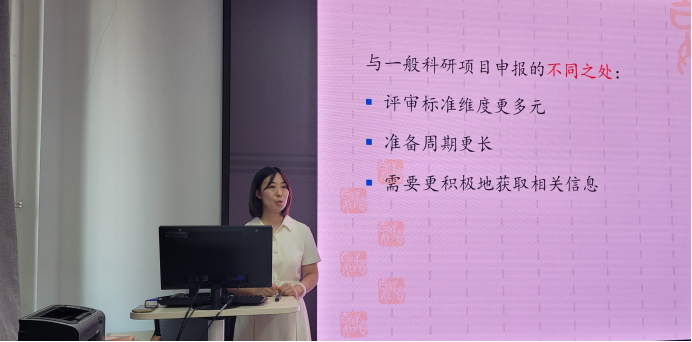 郑方教授于2020年成功申请了国家留学基金委项目,她结合自己的申报经验,介绍了项目信息关注、申报材料准备、研修计划撰写、项目评审标准、申报注意事项等内容,详细讲解了申报的整体安排和申报细节。会上,郑方教授还与参会教师进行了深入交流。