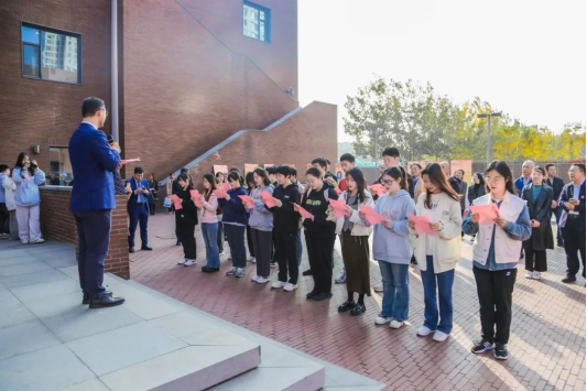 特别版明信片;“不凡的菜籽”奖学金捐资代表茹林表示将全力支持学院培育未来商业的“种子”,做出不凡的成就;数智商业产业学院微专业及大数据管理实验班学生代表与学院领导共同宣读《数商誓词》。