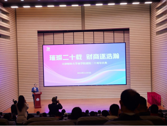 成功举办“璀璨二十载,财商逐浩瀚”建院20周年庆典暨数智时代新商科发展论坛。天津市社科联专职副主席袁世军、校党委书记赵鸣、副校长韩少波,以及兄弟院校代表、合作单位代表、校友和在校师生代表等200余人参加此次活动。活动分为腐漫画