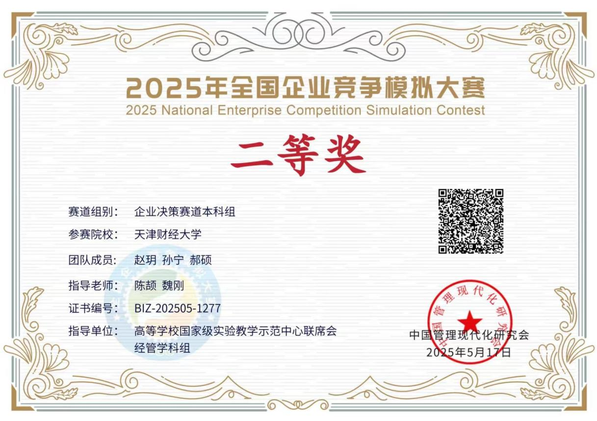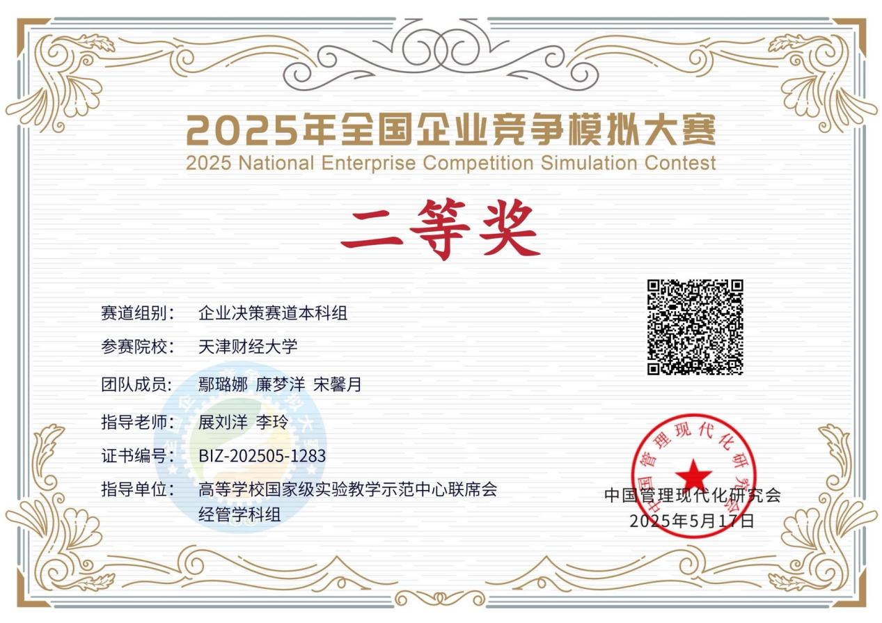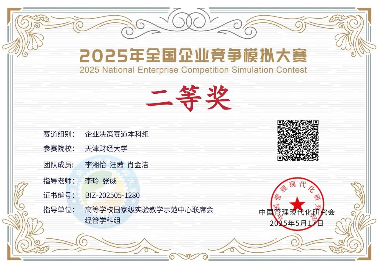此次获奖充分体现了我校本科教育的卓越成效。多年来,我校在全国大学生竞赛中持续保持领先优势,通过高水平赛事平台有效提升了学生的专业能力和综合素养,为培养国际化复合型人才提供了有力支撑。学校将持续推进教学改革,优化人才培养模式,激励更多学子参与高端竞赛,为国家发展贡献天财智慧与力量。