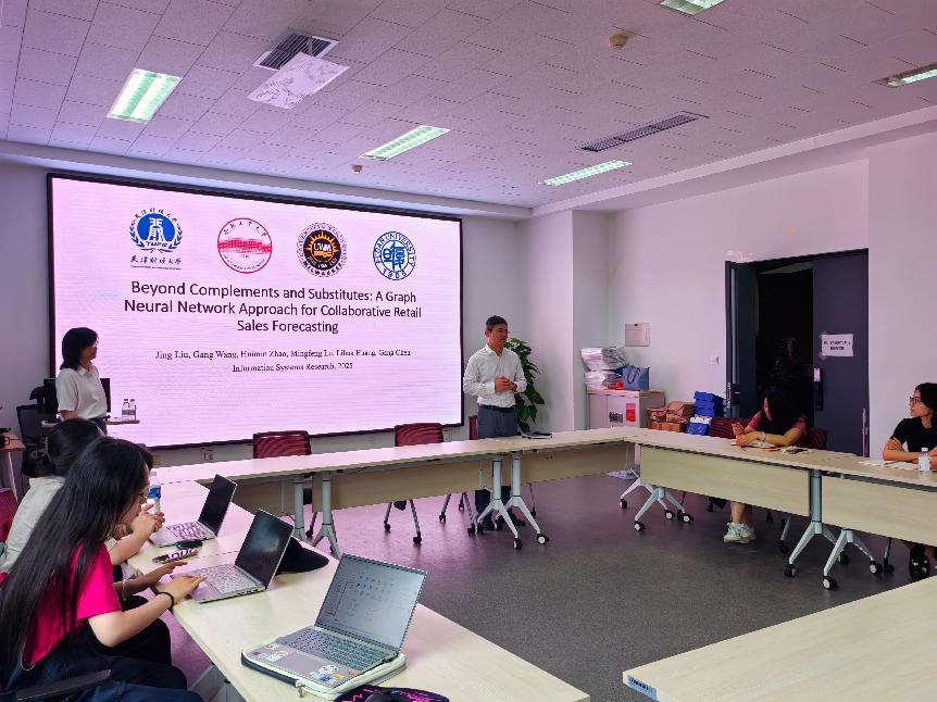 特邀管理科学与工程学院刘婧副教授作题为“数智化情境下产品关系赋能的零售销量预测”的学术研讨,此次研讨围绕深度学习方法与领域问题交叉研究范式和UTD24期刊发表论文经验分享展开。交流会由腐漫画