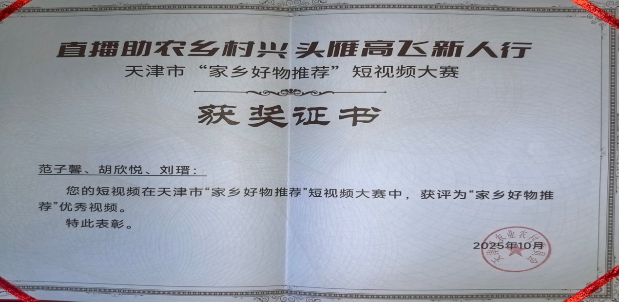 曹海英老师的指导下斩获全市一等奖。同时,该团队创作的七里海河蟹宣传短视频获得了“家乡好物短视频奖”。