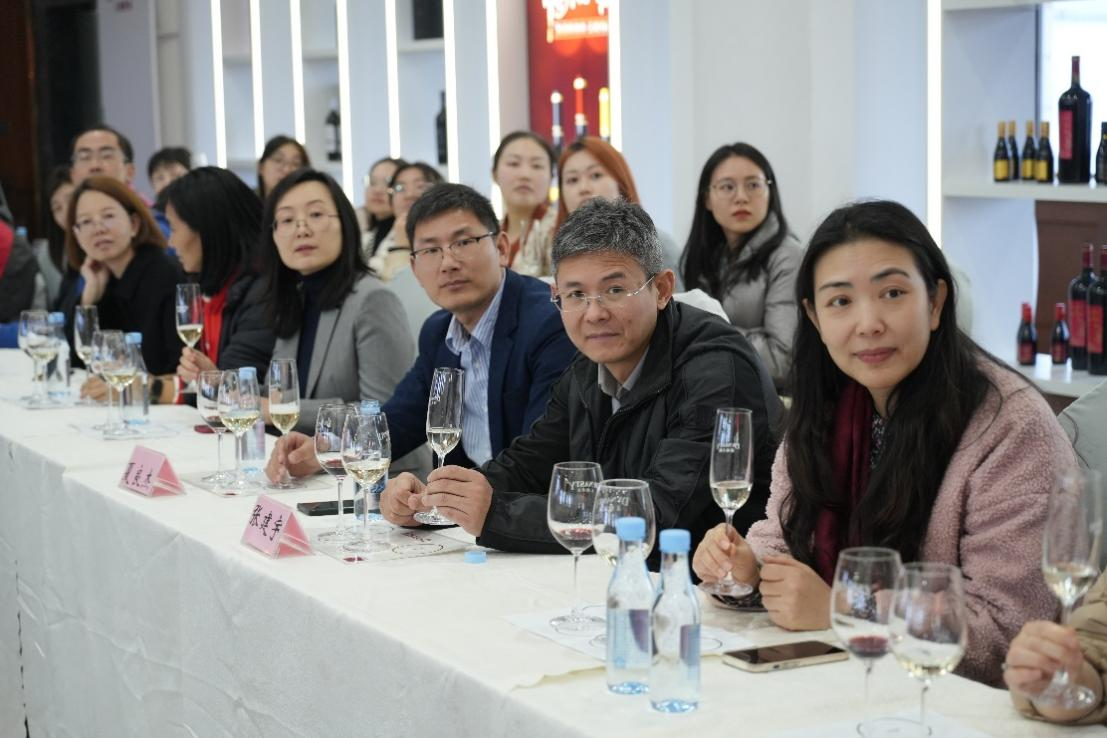 在专业品鉴环节中,王朝酒业技术部的资深酿酒师带领师生们体验了多款经典产品,从色泽、香气到口感细细品评。酿酒师耐心讲解了葡萄酒品鉴的专业知识和技巧,以及不同酒款背后的酿造工艺特点。每一杯酒都承载着岁月与风土的故事,也象征着品牌长期坚守的品质和初心。