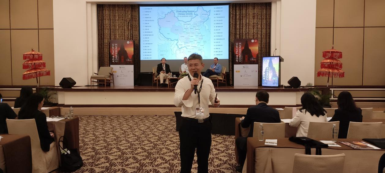 张建宇向与会代表全面阐述了学院的价值观、使命及远景规划,重点介绍了MBA项目的特色优势及在AI赋能教学改革与终身学习体系建设方面的创新实践,受到与会代表的高度认可。他指出,学院MBA教育坚持以社会责任感培养为导向,着力培育具有可持续发展意识的高素质商科人才。