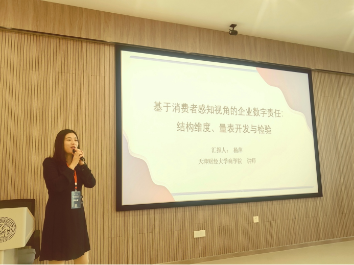 杨萍老师在会议分论坛环节宣讲了论文《基于消费者感知视角的企业数字责任:结构维度、量表开发与验证》。该论文通过混合方法研究构建了消费者感知的企业数字责任结构维度模型,共包含感知透明度、数据隐私保护、数字产品质量、数字补救制度、数字培训和数字公平六个维度,并在此基础上开发了测量量表,研究结论为后续企业数字责任领域的研究奠定了工具基础,推动了该领域研究的实证进程。会议专家对该研究的前沿性给予了高度评价,并对其进一步修改和完善提供了宝贵的建议。