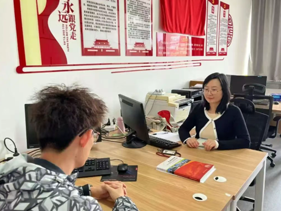 的老师们与学生面对面、一对一交流。