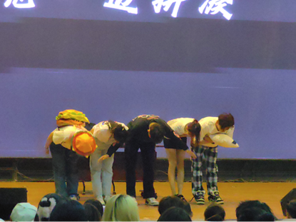 《考前心理战》整体是一个气氛轻松欢快的话剧,剧中的“学习”与主人公大锁内心种种诱惑的博弈贯穿全剧,使我在演绎时拥有了更为具象的责任感。面试成功后,我不断思索如何在喜剧中扮演一个相对正经的人物,也逐渐明白每一句台词都要细心斟酌。演绎时不同角色的动作、声调都必须体现各自的特色,这无疑也需要精心打磨。经过大家共同的努力,《考前心理战》成功获得了第一名的好成绩,一鸣惊人。