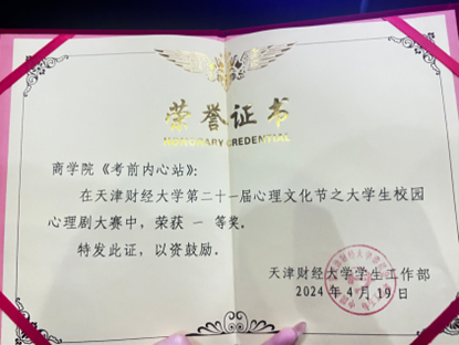 出演的原创心理剧《考前内心战》取得大赛一等奖的好成绩!