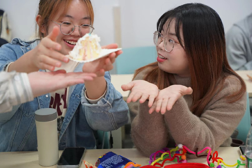 紧张有趣的小游戏、各种各样的小零食、精心制作的生日蛋糕,让同学们暂时放下学习的压力,尽情享受这份欢乐和惊喜,为寿星送上最热烈的掌声和祝福。