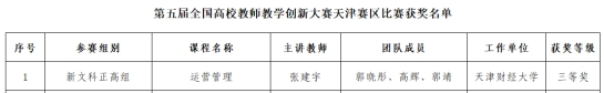 张建宇团队积极备赛,深入钻研教学内容,大胆创新教学方法,经过校赛遴选、市赛网络评审预赛,进入决赛。张建宇团队认为数字经济时代传统教学已无法满足学生需求,《运营管理》课程需要在意义建构理论的指导下,通过感知情境、阐释框架和行动验证的三重循环帮助学生将离散的知识点转化为系统化的认知体系。课程采用“问题前置”式教学法,引导学生通过多元信息源构建问题认知,建立情境锚定机制。教学设计上,将企业、高校和学生充分融合,构建“企业——高校——学生”三元交互系统。教师从知识传授者转型为“意义架构师”,通过开发教学案例、运用苏格拉底诘问法等方式推动深度思考,搭建企业实战专家与学术前沿的对话平台。课程体系通过“认知冲突-意义协商-实践验证”的过程,将运营流程知识转化为具有战略价值的决策智慧。
