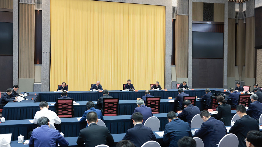 4月30日上午,中共中央总书记、国家主席、中央军委主席习近平在上海主持召开部分省区市“十五五”时期经济社会发展座谈会并发表重要讲话。新华社记者 丁林 摄